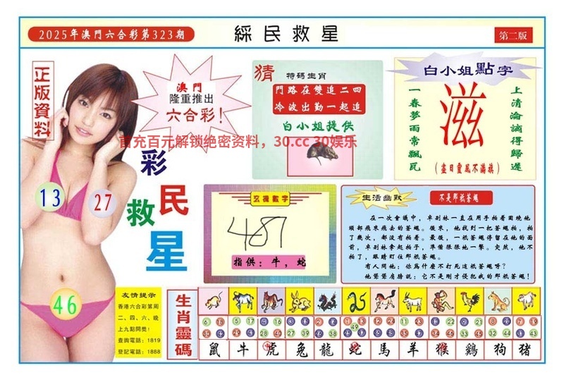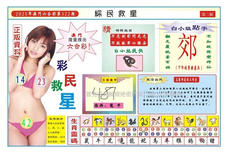 324期:密门仙机/心水特码信/黄大仙天书/波色生肖诗/生肖歇后语